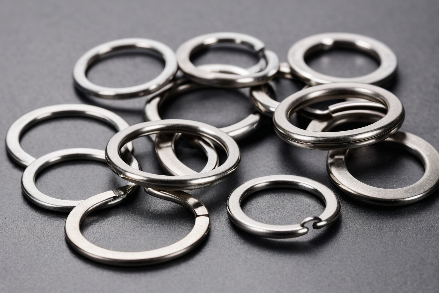 Retaining rings (Seeger) secure the position of rotating parts on shafts or in bores. We make external and internal rings to DIN 471 and DIN 472, plus custom rings on special order.